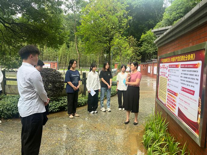 6月11日下午,学院党委副书记蒋琼深入本科生第二党支部,为支部党员们带来了一堂生动而深刻的党纪学习教育纪律党课,本次党课在学校廉政园开展。