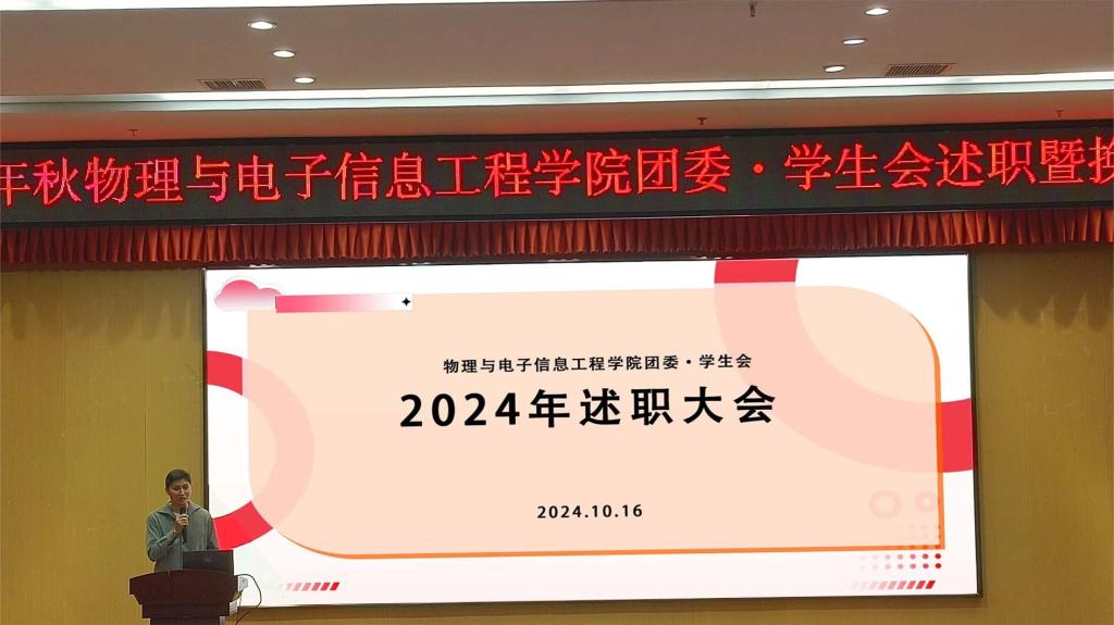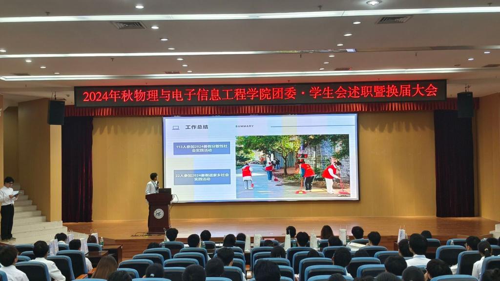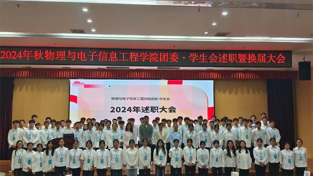 2024年10月16日晚,桂林理工大学太阳集团2007团委·学生会在雁山校区图书馆报告厅举办了述职暨换届大会。学院党委副书记蒋琼、学工组长黄嘉、团委书记姚倩、兼职辅导员李琪出席本次会议。本次大会旨在总结过去一段时间学生会的工作成果,明确未来的工作方向,同时加强各部门之间的交流与合作。