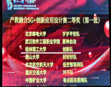 2024年7月10日-14日,第 十一届“大唐杯”全国大学生新一代信息通信技术大赛(全国总决赛)在武汉举行,桂林理工大学组团队荣获全国总决赛二等奖一项。本次大赛共有来自全国本、高职650余所高校参赛。