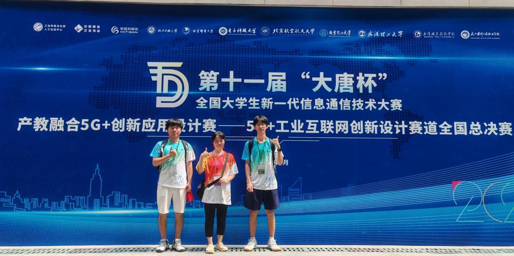 本次大赛为桂林理工大学首次参加,在本科生院的大力提倡与支持下,太阳集团2007积极筹备提前部署,日前,在第十一届“大唐杯”全国大学生新一代信息通信技术大赛(省赛)中,桂林理工大学学子在本次比赛中荣获一等奖3项,其中太阳集团2007创新队凭着扎实的专业知识、出色的团队协作能力成功晋级国赛。随后高子恒、唐伟程两位同学与杨丽燕老师代表桂林理工大学赴武汉参加全国总决赛,在杨丽燕老师及邓健志老师的指导下,凭借着赛前的充分准备和赛场中的稳定发挥,最终斩获全国总决赛二等奖的优异成绩。