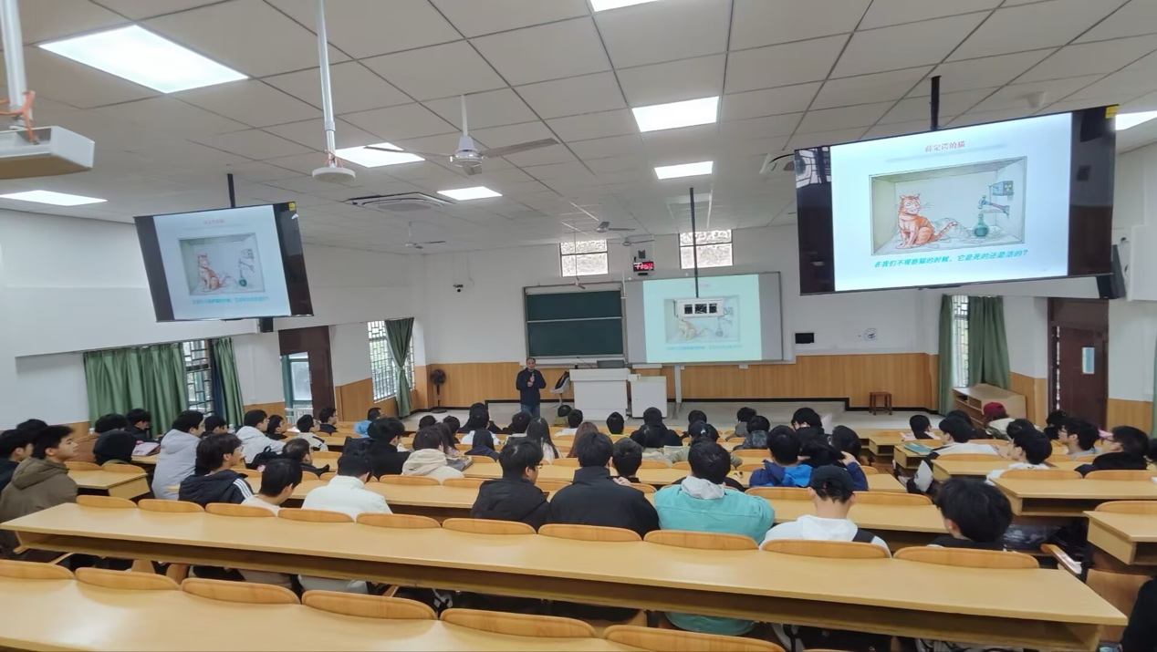 本次教学研讨活动对象为郑晓军副教授主讲的《物理学前沿》课程。郑老师课前准备充分,上课教态自然,内容娴熟,重点突出,注重师生交流互动,做到深入㳀出讲解抽象的教学内容。课后参会老师做了充分的交流,大家认为本节课能根据教学内容的特点,在教学引入环节中穿插了与教学内容密切相关的思政案例,既能较好地完成课程思政教学目标,又能很好地把思政元素和课程教学内容有机融合起来,同时让学生更加清楚地认识到物理知识源自生活、高于生活,增强学生学好物理知识的信心。参加活动的老师还提出一些针对性强的改进建议。