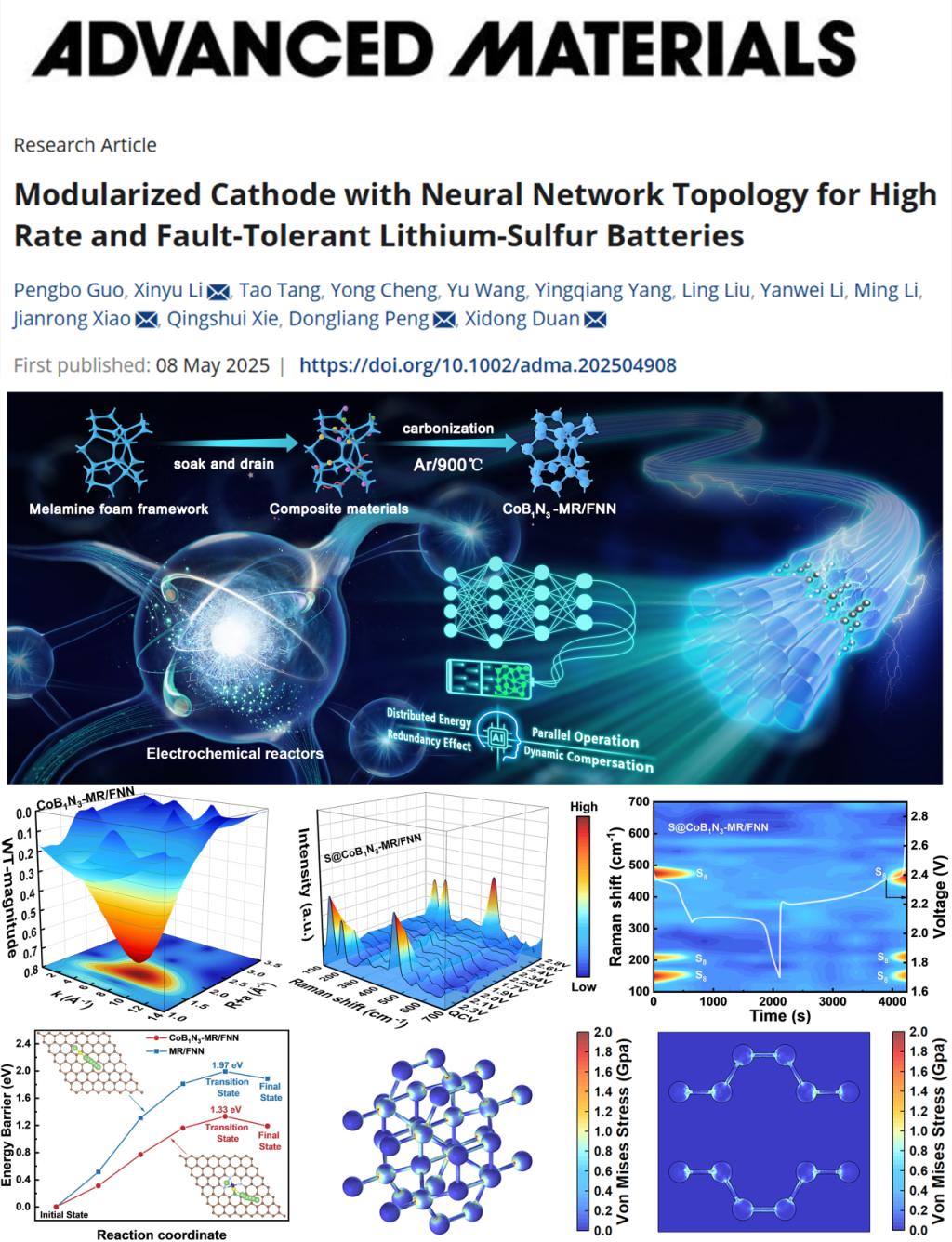 近日,太阳集团2007李新宇研究员、肖剑荣教授团队在顶级期刊《Advanced Materials》(中科院一区TOP期刊,2024年影响因子27.4)上发表题为“Modularized Cathode with Neural Network Topology for High Rate and Fault-Tolerant Lithium-Sulfur Batteries”的学术成果。该研究成果首次提出了电极的容错策略并阐明了其作用机制,为储能电池的设计与安全性提供了全新的视角。